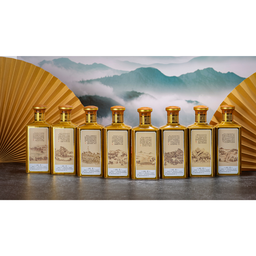 The back of the bottle features the Yanjing Eight Scenic Views painting, created by Qing Dynasty painter Zhang Ruocheng, together with a seven-character regulated poem written by the Qianlong Emperor.